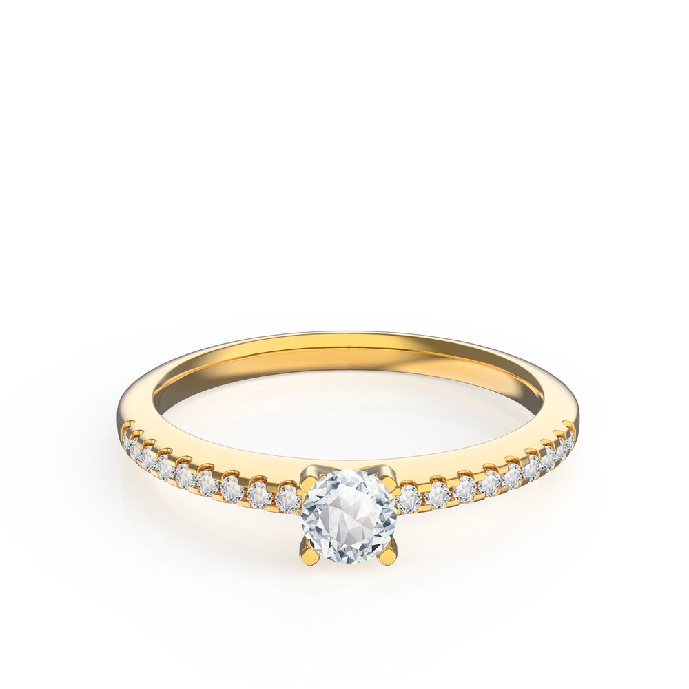 0.18 carat H VS2 triple excellent none fluor. GIA certified round diamond. 18K Gold. 0.10 carat of G VS side diamonds. Diameter main diamond ~3.6mm. GIA certificate and luxury packaging included. We can make a free customized 3D drawing based on this design, your ring size and your wishes. Please contact us below. Also if you require advice from our experts.