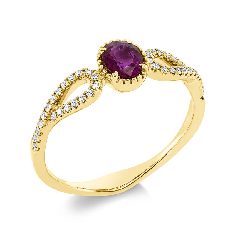 ring 18 kt YG, setting rhodium plated