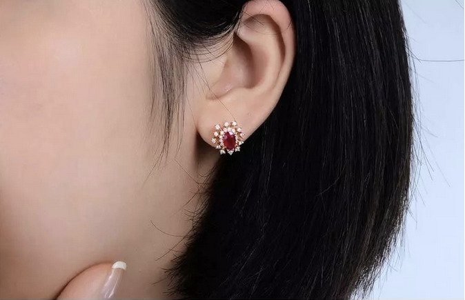 1.25 carat Natural Ruby. 0.56 carat Diamond. 18K Gold Earrings. Luxury packaging included. We can make a free customized 3D drawing based on this design and your wishes. Please contact us below. Also if you require advice from our experts.
